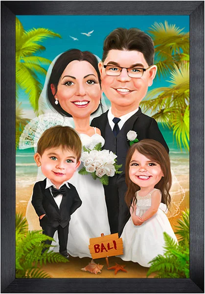 A fully customised 4 person caricature delivered to you as a stunning 30cm x 45cm print. Simply let me know what theme you would like and send me some good photos to draw from. If you would like optional framing then please select below.